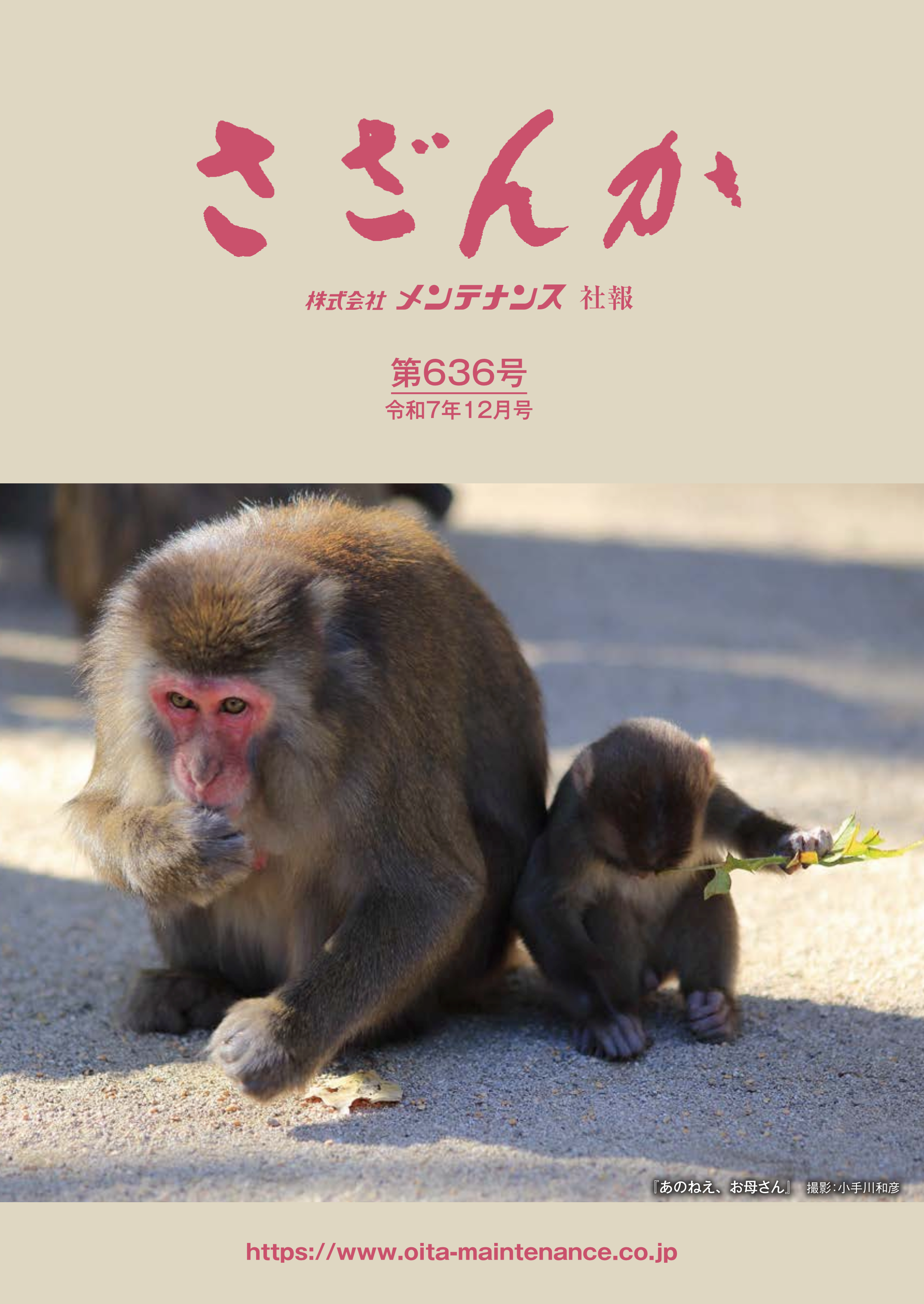 令和7年12月636号 あのねえ、お母さん 会長雑話 マナーアップ「時間厳守と迅速な対応」 新社長就任祝賀会 インフルエンザ流行期入り「産業医 木村医院」 宇佐神宮勅祭・ご鎮座1300年奉祝行事 イオンモール三光「○ごとハッピープロジェクト表彰」 第49期マネジメントスクール 大分スポーツ公園クラサスドーム大分感謝祭2025 保育フェス参加 安心安全ニュース イベント情報 PDFダウンロード
